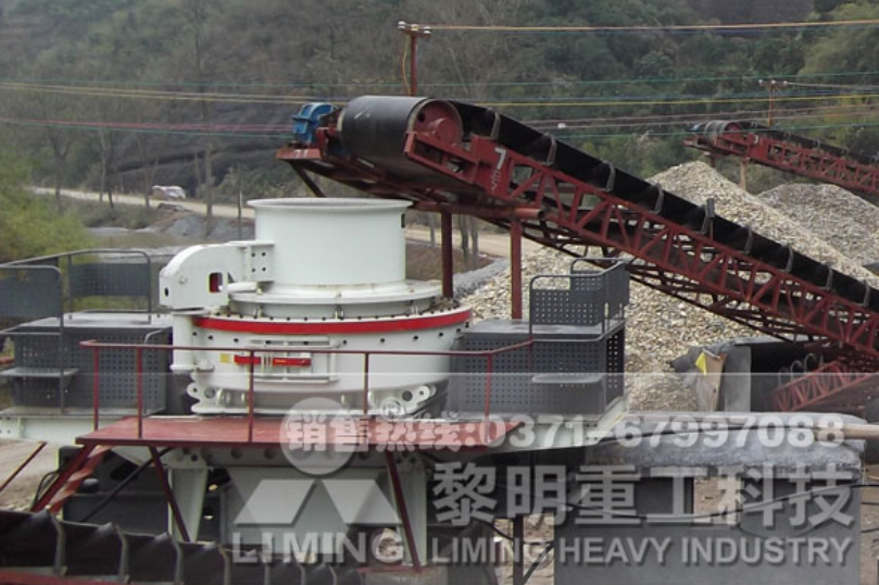 首先同由分料器四周自收落下的一部分物料沖擊破碎,然后一起沖擊到渦支腔內(nèi)物料襯層上,被物料襯層反彈,斜向上沖擊到渦動(dòng)腔的頂部,又改變其運(yùn)動(dòng)方向,偏轉(zhuǎn)向下運(yùn)動(dòng),從葉輪流道發(fā)射出來(lái)的物料形成連續(xù)的物料幕。這樣一塊物料在渦動(dòng)破碎腔內(nèi)受到兩次以至多次機(jī)率撞擊、磨擦和研磨破碎作用,被破碎的物料由下部排料口排出。